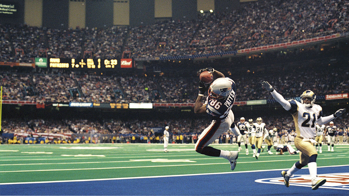 Top Photo: David Patten of the New England Patriots catches the ball during Super Bowl XXXVI in 2002. (Photo by Allen Kee/Getty Images)