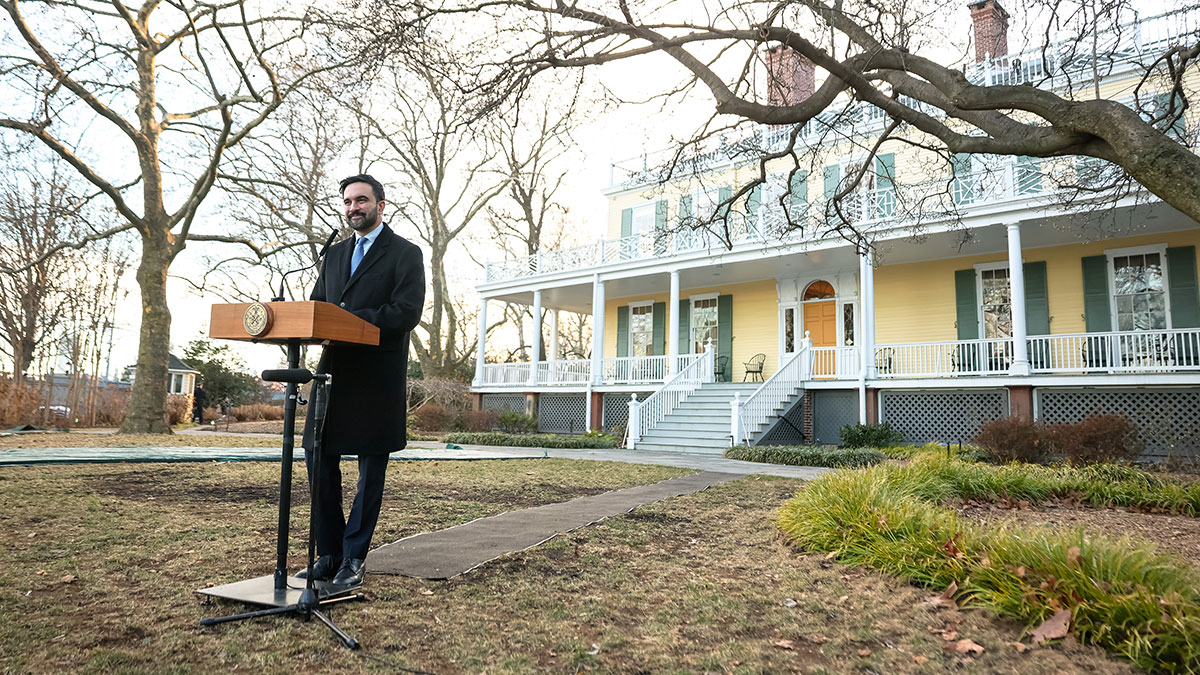 As he entered his third week in office last Monday, New York mayor Zohran Mamdani invited the City Hall press corps to view the progress of his move from a one-bedroom, rent-stabilized rental apartment in Astoria to the five-bedroom Gracie Mansion, the mayor’s official residence on Manhattan’s Upper East Side. A moving truck in the driveway proclaimed its owner to be a “certified women business enterprise;” workers had artfully strewn half-open boxes along the walkway to the press conference, so that reporters could peep at a half-packed plant and mirror belonging to the mayor and his wife, Rama Duwaji. The smiling couple posed together for photographers as they entered the mansion as residents for the first time.